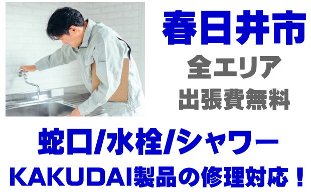 春日井市で水栓メーカーKAKUDAIの修理業者をお探しなら当社までお気軽にお問い合わせください。蛇口の水漏れ、シャワーの故障などカクダイ製に関するトラブルなら何でもご相談ください。