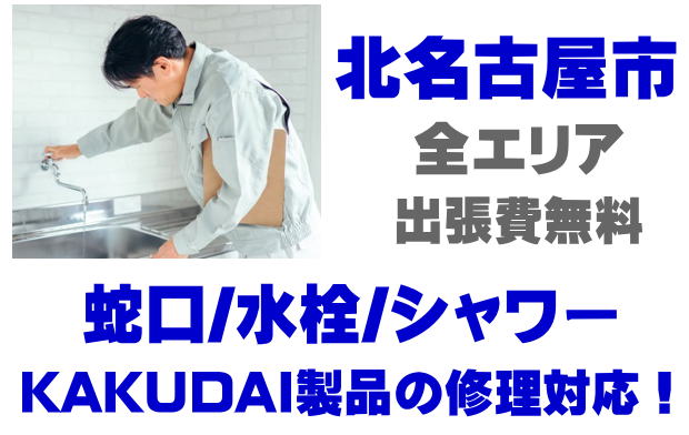 北名古屋市で水栓メーカーKAKUDAIの修理業者をお探しなら当社までお気軽にお問い合わせください。蛇口の水漏れ、シャワーの故障などカクダイ製に関するトラブルなら何でもご相談ください。