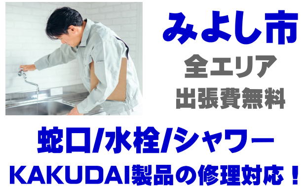 みよし市で水栓メーカーKAKUDAIの修理業者をお探しなら当社までお気軽にお問い合わせください。蛇口の水漏れ、シャワーの故障などカクダイ製に関するトラブルなら何でもご相談ください。