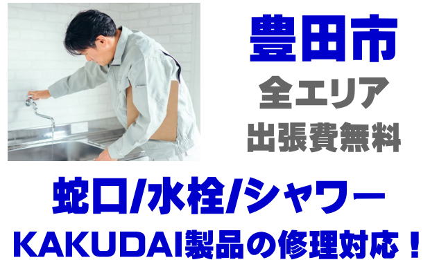 豊田市で水栓メーカーKAKUDAIの修理業者をお探しなら当社までお気軽にお問い合わせください。蛇口の水漏れ、シャワーの故障などカクダイ製に関するトラブルなら何でもご相談ください。
