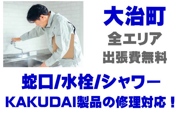 大治町で水栓メーカーKAKUDAIの修理業者をお探しなら当社までお気軽にお問い合わせください。蛇口の水漏れ、シャワーの故障などカクダイ製に関するトラブルなら何でもご相談ください。
